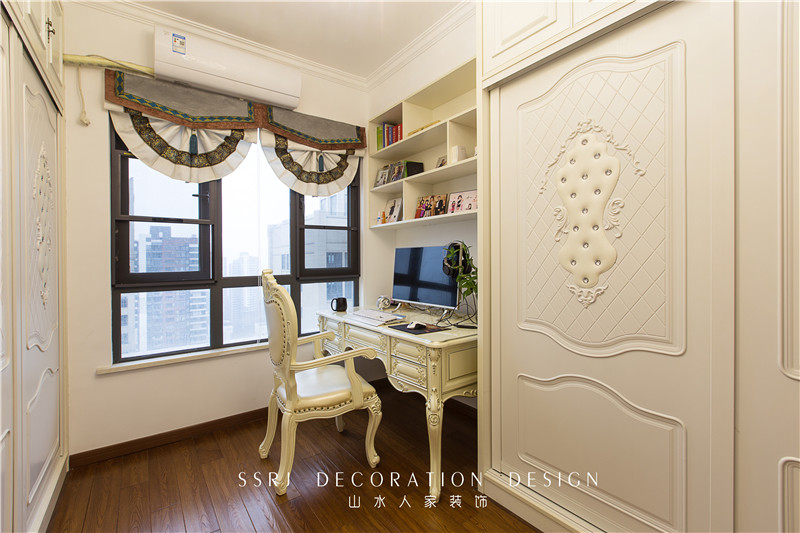 書房更多的空間用來做儲物用的柜子,但絲毫不妨礙功能區(qū)的使用,氣球簾的造型和歐式融合的相當令人滿意,生活氣息濃烈了起來,太過濃重的深沉宮廷氣息被陽光驅散,只留下了我們原本想留下的那部分--優(yōu)雅,安靜,不凡。