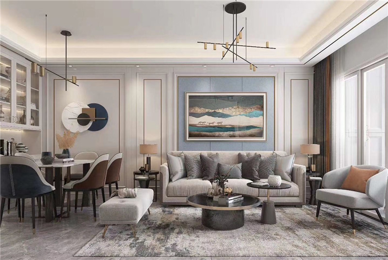 保利城135M2輕奢風(fēng)格效果圖案例欣賞