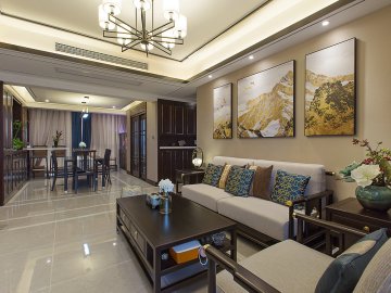廣電蘭亭時代三室兩廳140平新中式風格裝修效果圖