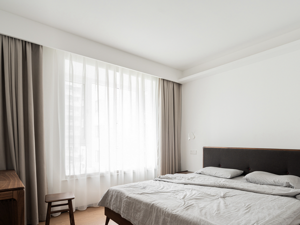 主臥同樣跟異型陽臺做了貫通,顯著提升了采光度,房間更顯寬敞大氣。平常的時(shí)候業(yè)主也可以到陽臺處曬太陽放松,享受難得的娛樂時(shí)光。