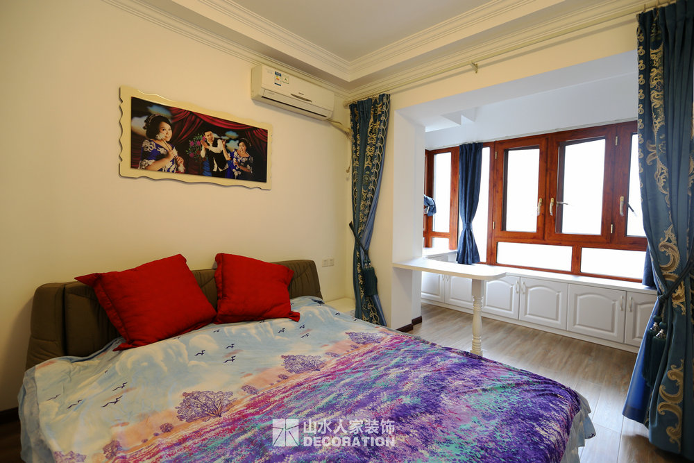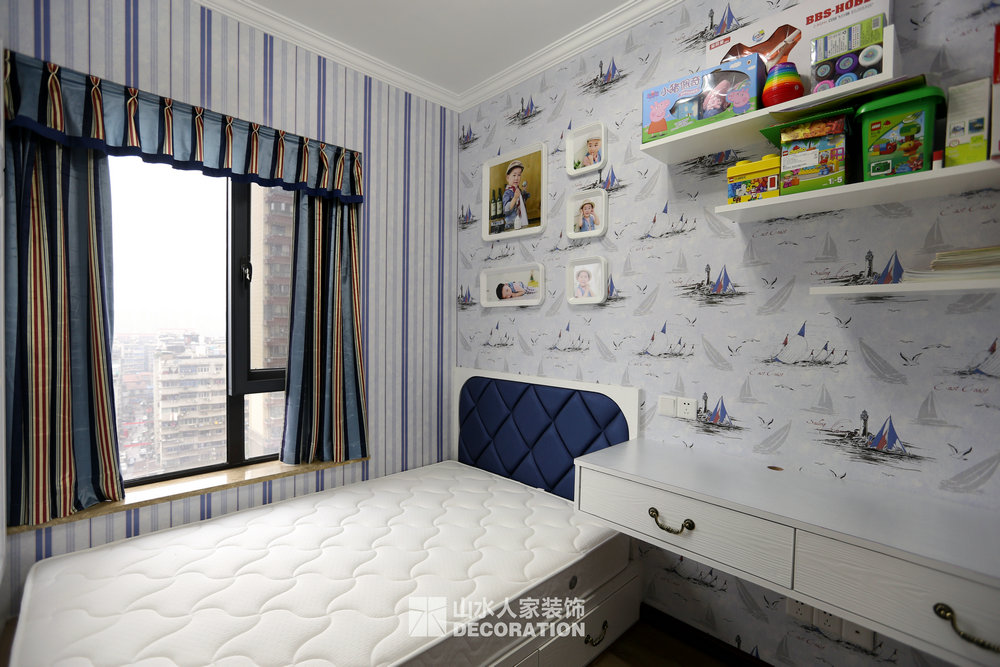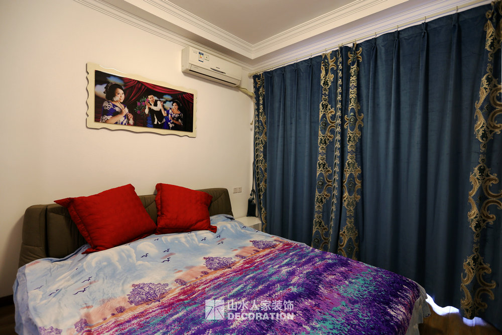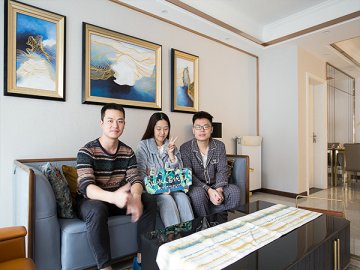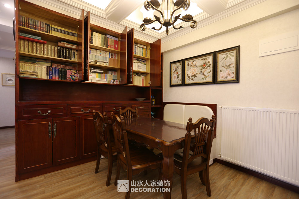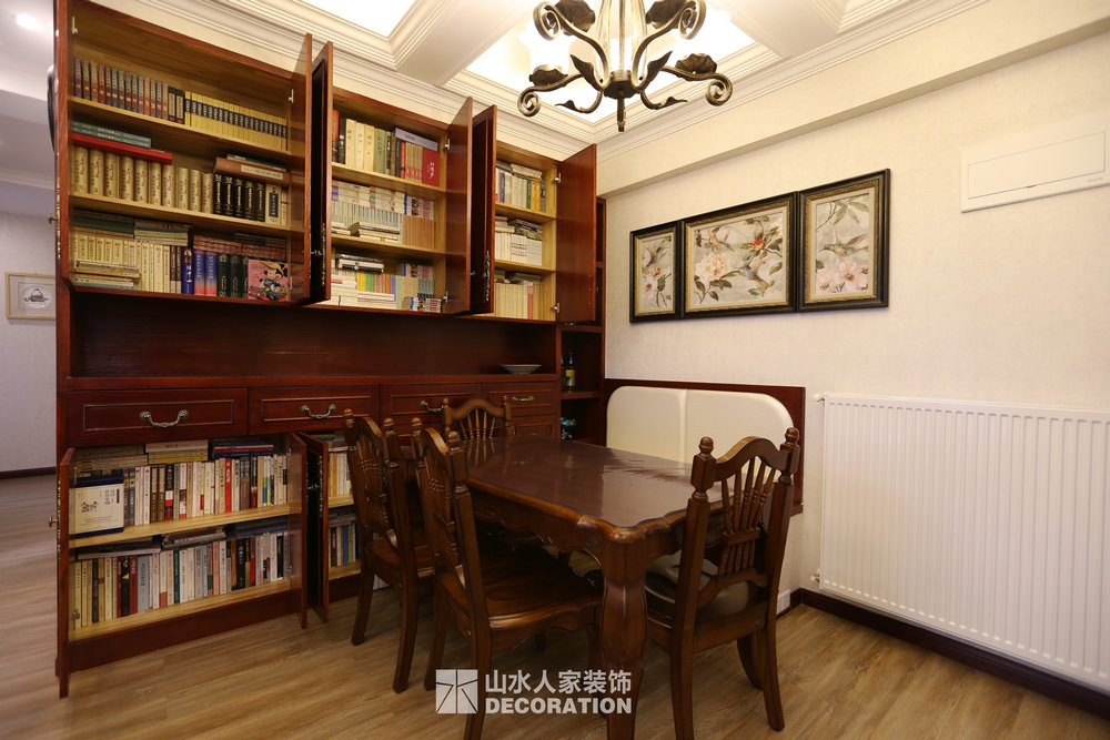 此套房為改善住房,家里一共五口人居住,男業(yè)主是公務(wù)員,女業(yè)主是位老師,加一個三歲的小男孩,外公外婆。由于職業(yè)原因吧,業(yè)主特別要求需要一整面大書柜。閑暇時最愛的就是坐在書房品一杯茶讀一本書。