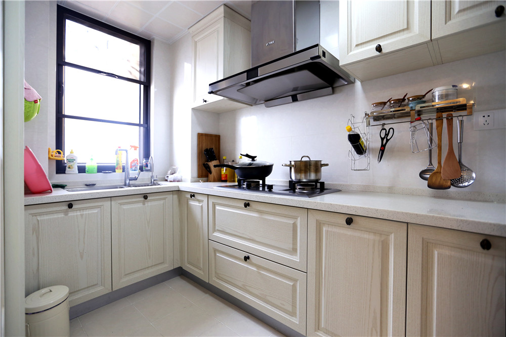 廚房的設(shè)計(jì)比較簡(jiǎn)單,因?yàn)槭占{空間多的可怕。頂吸式的抽油煙機(jī)造型大方,排煙效果較好。