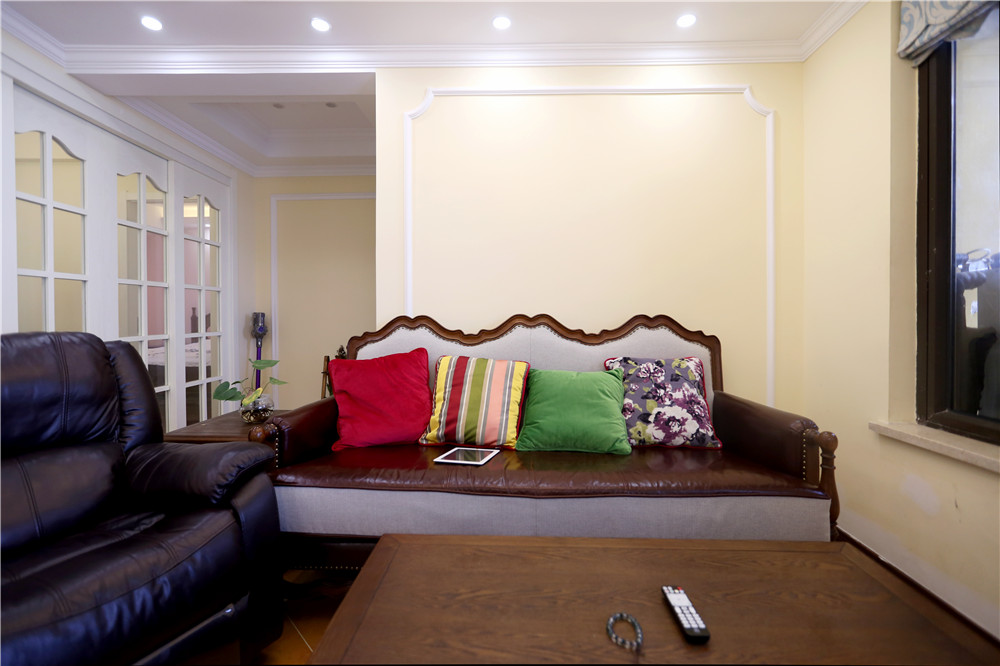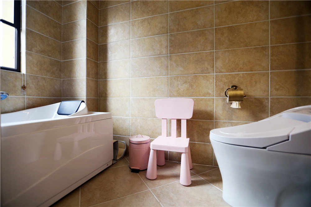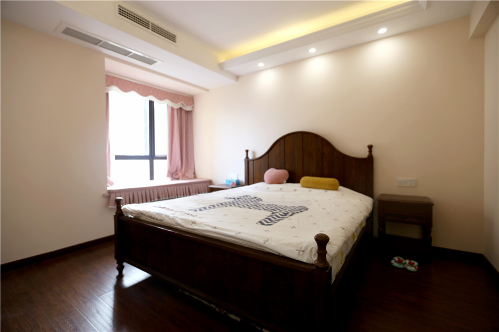 粉紅色窗簾與姜黃色乳膠漆搭配出暖色的感覺(jué),在木質(zhì)地板復(fù)古味道的襯托下,讓人沉浸在一種舒適放松的環(huán)境下。