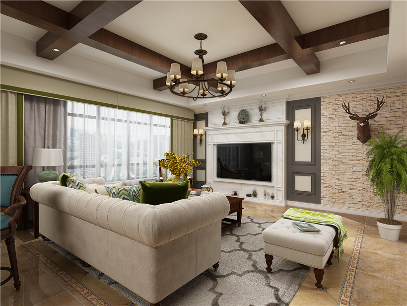 銀湖翡翠140平美式風(fēng)格裝修效果圖