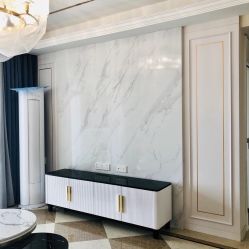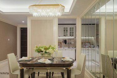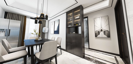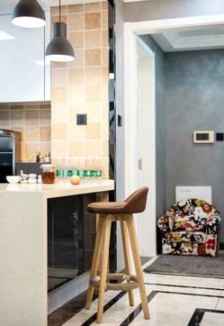 我自己做IT產(chǎn)品經(jīng)理人,比較喜歡看港劇,愛好戶外活動,本身也是從事科技行業(yè),四室兩廳的戶型比較開闊,滿足四口之家的生活需求,所以硬朗的港式風(fēng)格比較適合,家里人多,所以選擇六人餐桌,依舊以石材為主,不銹鋼元素融于其中。細(xì)節(jié)體現(xiàn)出現(xiàn)代港式獨有的前衛(wèi)、不受拘束的感覺。白色開放式酒柜隔板設(shè)計巧妙,便于收納又美觀。這些都是跟設(shè)計老師溝通過來確定下來。